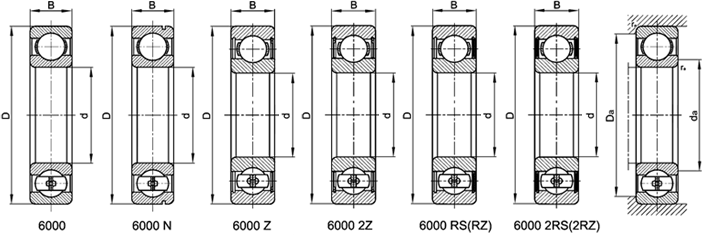 深溝球軸承除基本型外, 還有各種變型結構,如:帶防塵蓋的深溝球軸承,帶橡膠密封圈的深溝球軸承,有止動槽的深溝球軸承等。