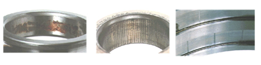 - 軸承的生銹和腐蝕有套圈、滾動體表面的坑狀生銹、梨皮狀生銹與滾動體間距分部的的凹坑狀生銹、全面生銹及腐蝕